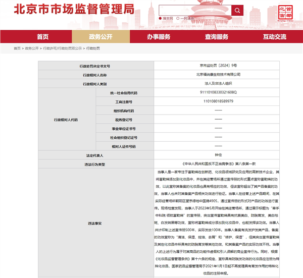 网络整理 2025-09-03 04:50近日,据界面新闻报道,北京市市场监督管理局对网红经济学家任泽平所带货的富勒烯洗发护发产品进行了调查,并对其备案公司北京福纳康生物技术有限公司(以下简称“北京福纳康”)处以8万元的罚款。原因是该公司在产品宣传中存在弄虚作假和引人误解的商业行为。