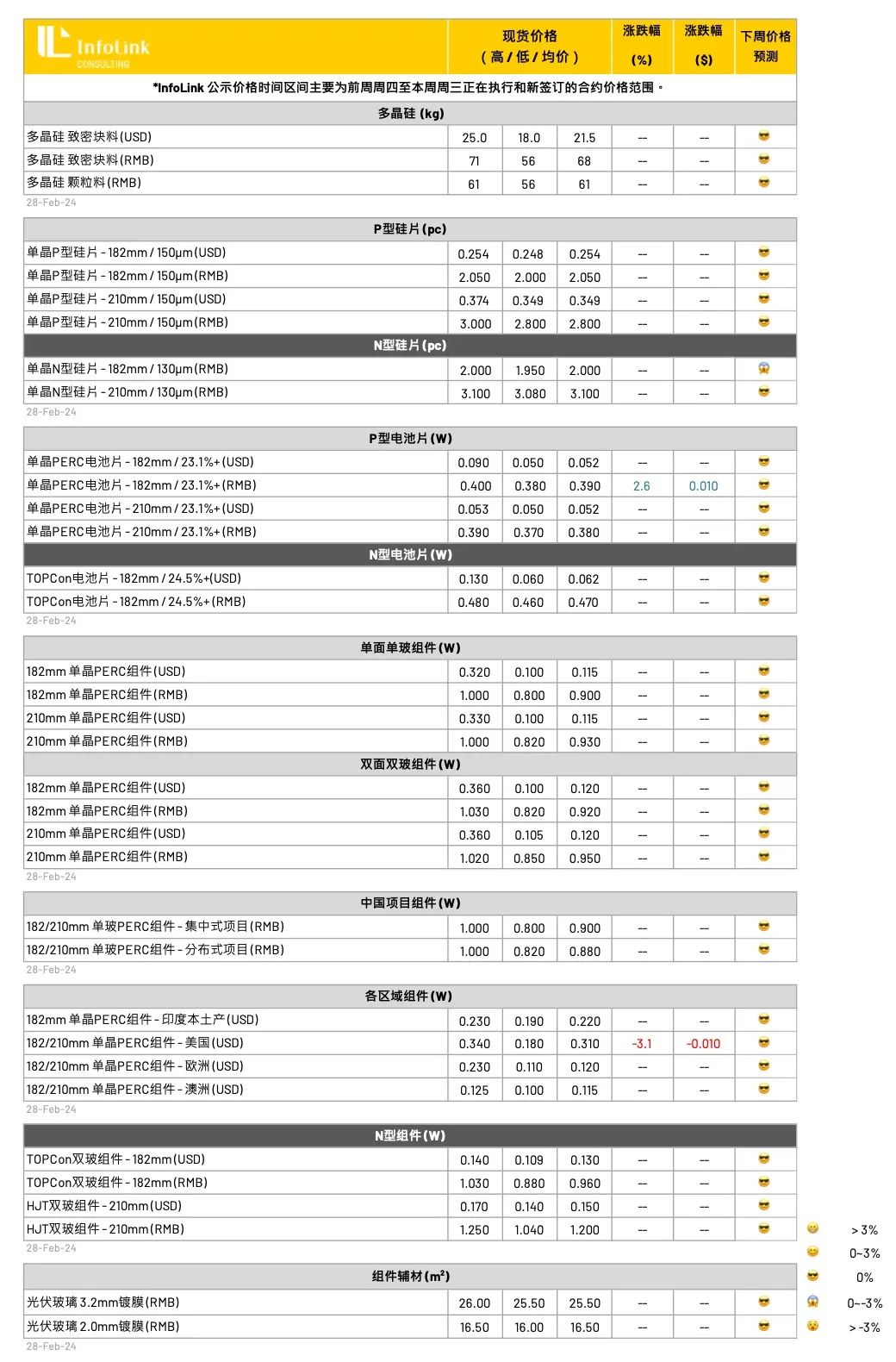 从春节过后,厂家酝酿PERC产品涨价每瓦2-4分人民币,然目前观察终端接受度目前确实并不明朗,三月整体预判价格恐以持稳为主,低价区段目前稍有上升,需等待整体需求上升。