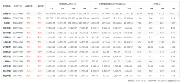 酒鬼酒产品聚焦酒鬼酒红坛和 52 度内参酒,红坛核心终端建设显成效,实现库存去化,开瓶量和宴席场次逐步向好。公司将坚定控盘分利,继续推进费用改革、通过数字化精准控货,维护渠道利润。24 年聚焦打透湖南市场,深化经销商布局和核心终端建设,重点市场做到精耕,推进县乡市场渠道下沉。古井贡酒公司深入推进“全国化、次高端”战略,目前全国化覆盖率已达到70%以上,省内、省外结构占比为 6∶4。进一步拓展公司在华中地区以外区域的市场规模。推行举牌对赌,进一步激发人员潜能。白酒业绩分化下建议关注高端及地产酒企业和汾酒等次高端高质量增长企业的突出机会,全年视角看酒鬼酒、水井坊、顺鑫农业等报表端存在反转预期的企业或有高赔率机会。