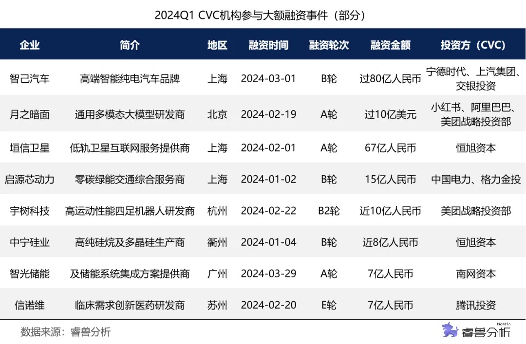 一季度214家CVC出手,联想创投活跃度居首;吉利控股、比亚迪各收获两个IPO|2024Q1中国企业创投CVC发展报告