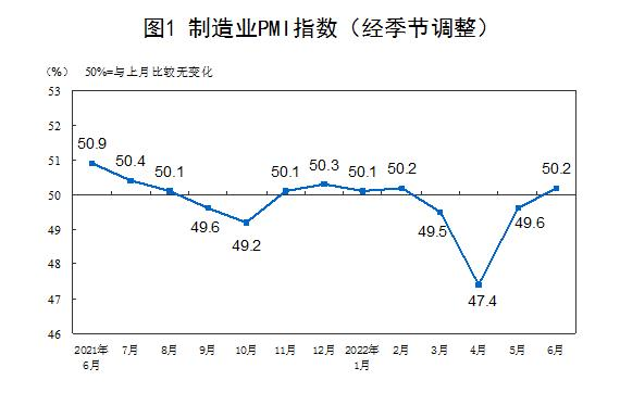 统计局:6月官方制造业PMI为50.2% 重回临界点以上