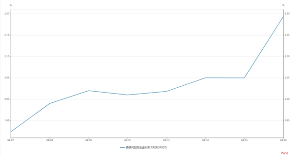 此外,从DR007利率来看,由4月7日最低的1.9236%上行到4月16日的2.1933%,上行了26个基点。