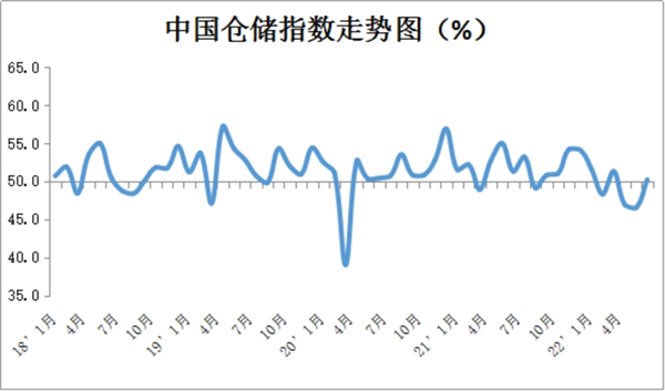 中国仓储指数为50.2%,较上月回升3.7个百分点。