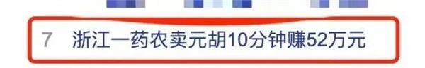 网络整理 2025-09-01 07:156月24日话题#浙江一药农卖元胡10分钟赚52万元#,登上热搜,引发关注