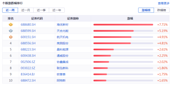 网络整理 2025-09-01 09:07证券之星光伏行业周报:中国有色金属工业协会硅业分会数据显示,本周国内硅料市场延续涨势,其中N型硅料涨幅超过P型硅料。中原证券最新观点指出,预计随着产业链上游价格逐步企稳,光伏下游价格将趋于稳定,从而带动下游装机需求。宏观方面,国家发改委等六部门文件指出,加强传统能源与新能源综合开发利用推动煤电、气电、风光电互补。企业方面,协鑫集成定增58亿加码电池片储能,爱旭股份定增60亿加码N型电池。