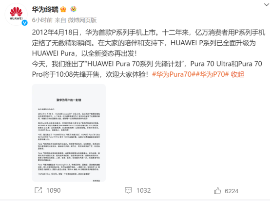 华为Pura70系列手机今日开售!