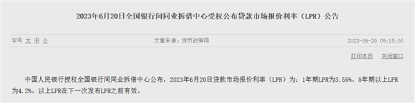 网络整理 2025-09-02 12:416月20日,人民银行授权全国银行间同业拆借中心公布了新一期贷款市场报价利率(LPR)。其中,1年期LPR为3.55%,上月为3.65%;5年期以上LPR为4.2%,上月为4.3%。1年期LPR、5年期以上LPR均较上月下降10个基点。