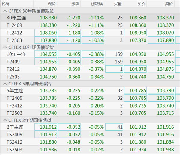 受该消息影响,国债期货突然跳水下跌。截至发稿,国债期货跌幅继续扩大,30年期主力合约跌超1%,10年期主力合约跌近0.4%,5年期主力合约跌超0.2%。