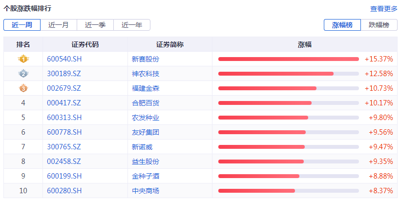 网络整理 2025-09-02 14:26证券之星食品饮料行业周报:2023年7月10-13日,沪深300指数上涨1.9%,申万食品饮料指数上涨3.26%,多只酒类个股表现抢眼。剔除北交所个股后,本周涨幅最大的5只个股为新赛股份、神农科技、福建金森、合肥百货、农发种业。
