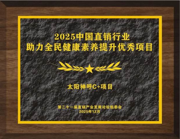 2025年12月4日,第二十一届直销产业发展论坛在北京举办,太阳神呼C+鼻健康项目凭借在提升公众健康素养方面的突出表现,荣获“2025中国直销行业助力全民健康素养提升优秀项目”。这一荣誉既是对太阳神37年深耕大健康领域专业实力的肯定,也彰显了太阳神以鼻健康为切入点、推动“健康中国”战略落地的创新价值。